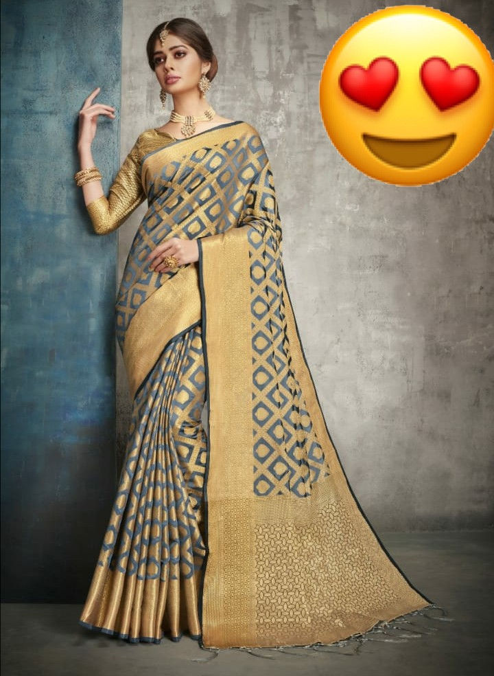 Beautiful blue ana silk saree